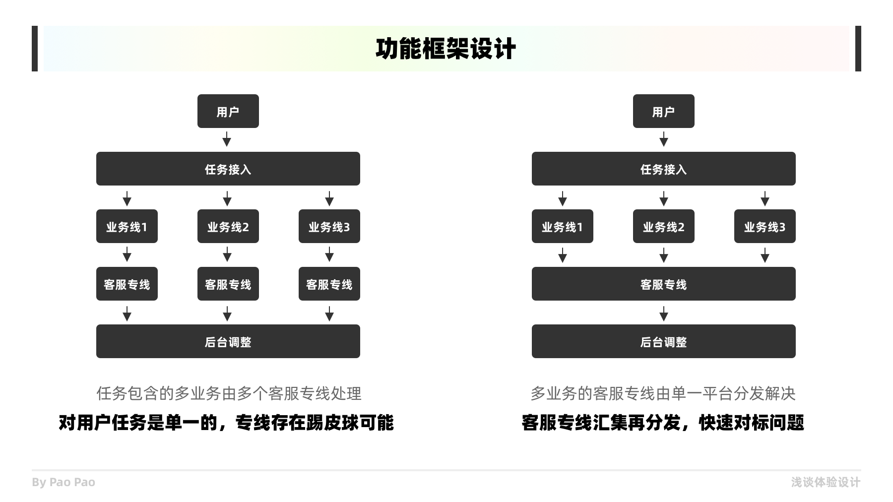在構(gòu)建產(chǎn)品業(yè)務(wù)框架時,大多可能會出現(xiàn)以公司服務(wù)資源為中心的構(gòu)建方式,但同時這種由內(nèi)而外開發(fā)方式會為產(chǎn)品帶來更多的弊端(往往產(chǎn)品投入使用后,會出現(xiàn)超出預(yù)期的問題)。嘗試去站進(jìn)用戶的鞋子里去,或者找來目標(biāo)用戶甚至是相關(guān)的專家來做咨詢,減少研發(fā)迭代的彎路。