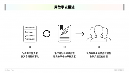 故事的元素通常會更豐富更有趣味,用故事敘事更能提升用戶的興趣和關(guān)注,這能便于構(gòu)建共情。因此當(dāng)你發(fā)布測試任務(wù)或者撰寫研究報(bào)告時,都可以加入背景故事或用故事敘事,便于對象更容易理解和共情,你甚至可以用筆繪制故事版,像四格漫畫一般,因?yàn)橛脠D傳達(dá)概念或信息更容易讓人記住或回想起來,并且當(dāng)你用這些方法時,自身也能加強(qiáng)理解。共情不是單向傳遞的,不要高估對方的理解能力,讓你的信息更簡單明了的傳遞也是重要的共情應(yīng)用!