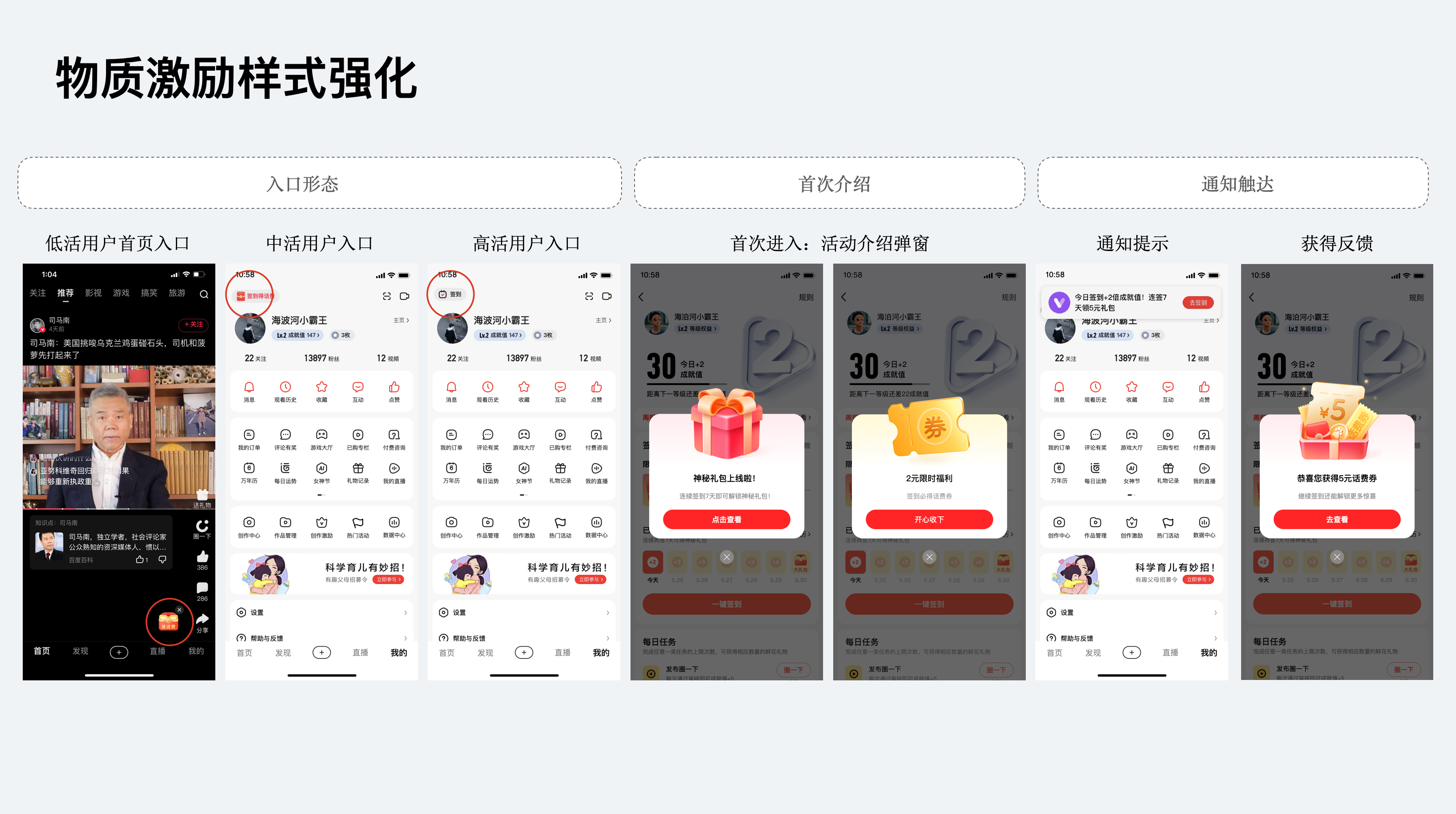 除了精神激勵外,針對于低活躍度與中活躍度用戶,進行差異化的激勵,用物質金錢刺激用戶訪問或完成任務。
