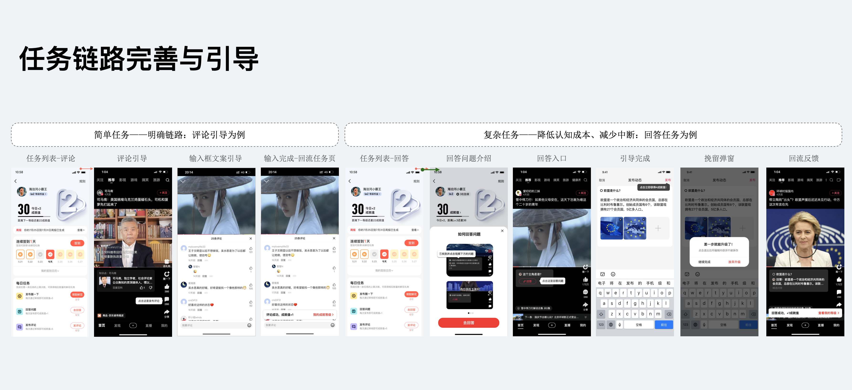 1)簡化認知成本,引導用戶完成等級任務