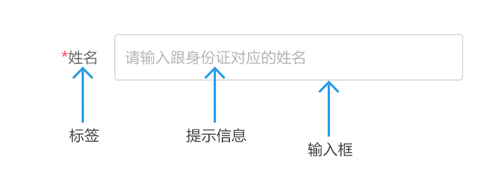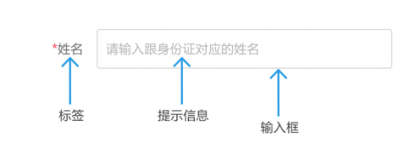 一個(gè)輸入框,通常有標(biāo)簽名稱(chēng)label、提示信息placeholder(輸入信息后提示文字消失)、初始值value(需手動(dòng)刪除)。如果是必填表單,在適當(dāng)位置(標(biāo)簽的前后,輸入框后)加上紅色*號(hào)(或其他符號(hào))