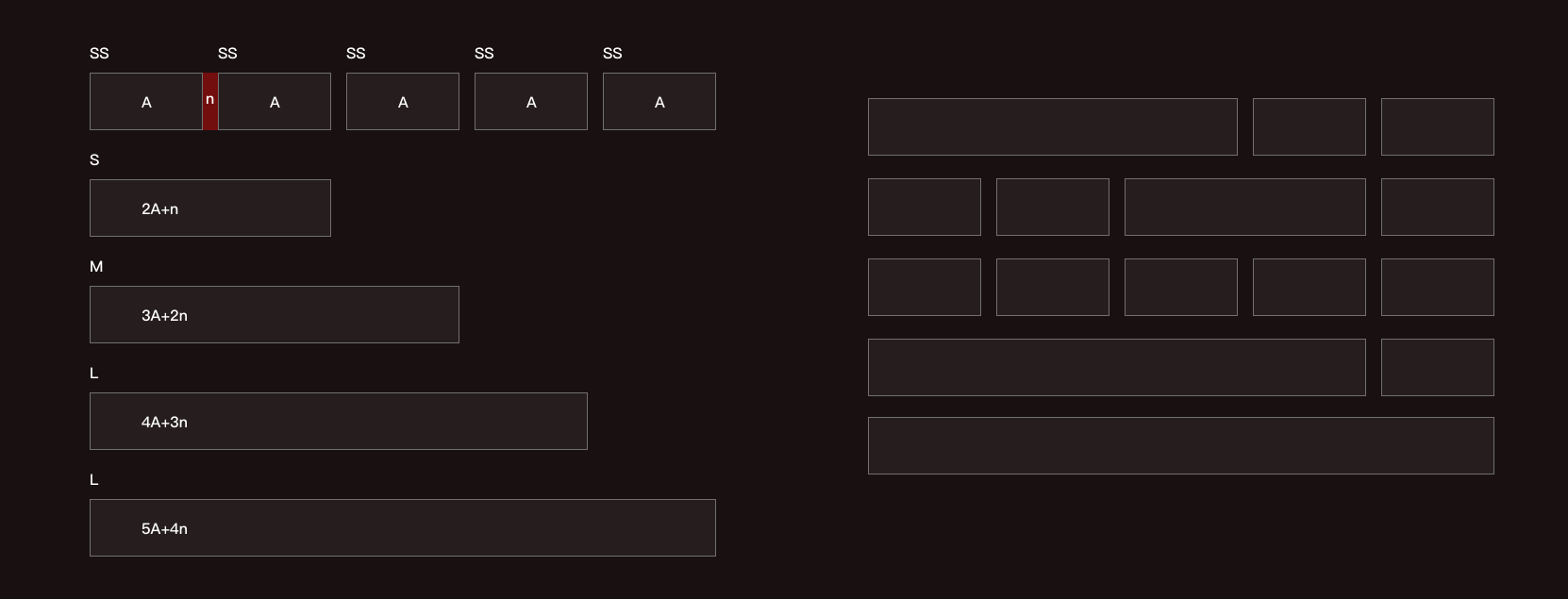 采用這樣的處理方式時(shí),需要提前預(yù)知用戶填寫該字段內(nèi)容的最大寬度與最小寬度,中和這兩個(gè)極值選擇合適的輸入框?qū)挾取S纱宋覀儗?huì)得到5種梯度的輸入框,如下圖例