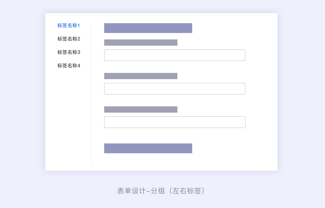 標簽分組:指的是將表單信息分組標簽化,形成獨立的小表單信息,分為上下結構和左右結構。
