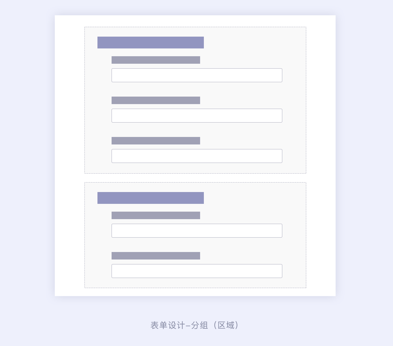 區(qū)域分組:指的是將表單信息分類顯示,通過矩形背景劃分區(qū)域,形成小組表單信息。