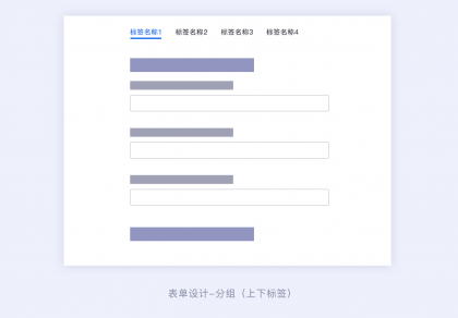 復雜的表單可以采用區(qū)域分組的形式,還可以采用標簽分組的設計形式。標簽分組可以一眼看全所有分組大類信息,對于一個表單涉及到多種信息字段的情況,并且每個組的字段信息都是獨立的,不是強相關的,那么我們就可以采用標簽分組的形式。