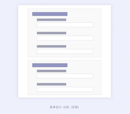 在B端設計中,一些復雜的表單會通過區(qū)域分組的形式排版設計,可以將一個表單的信息通過信息的關聯關系劃分不同的區(qū)域形成小組信息,這樣有利于信息的歸類以及信息的填寫。用戶在看到復雜表單的時候不會被龐大的表單迷惑,可以更好的找到表單字段,也可以讓用戶填寫表單更有秩序、更清晰。區(qū)域分組的使用場景,一般也是針對復雜表單且具有強相關的信息關系。