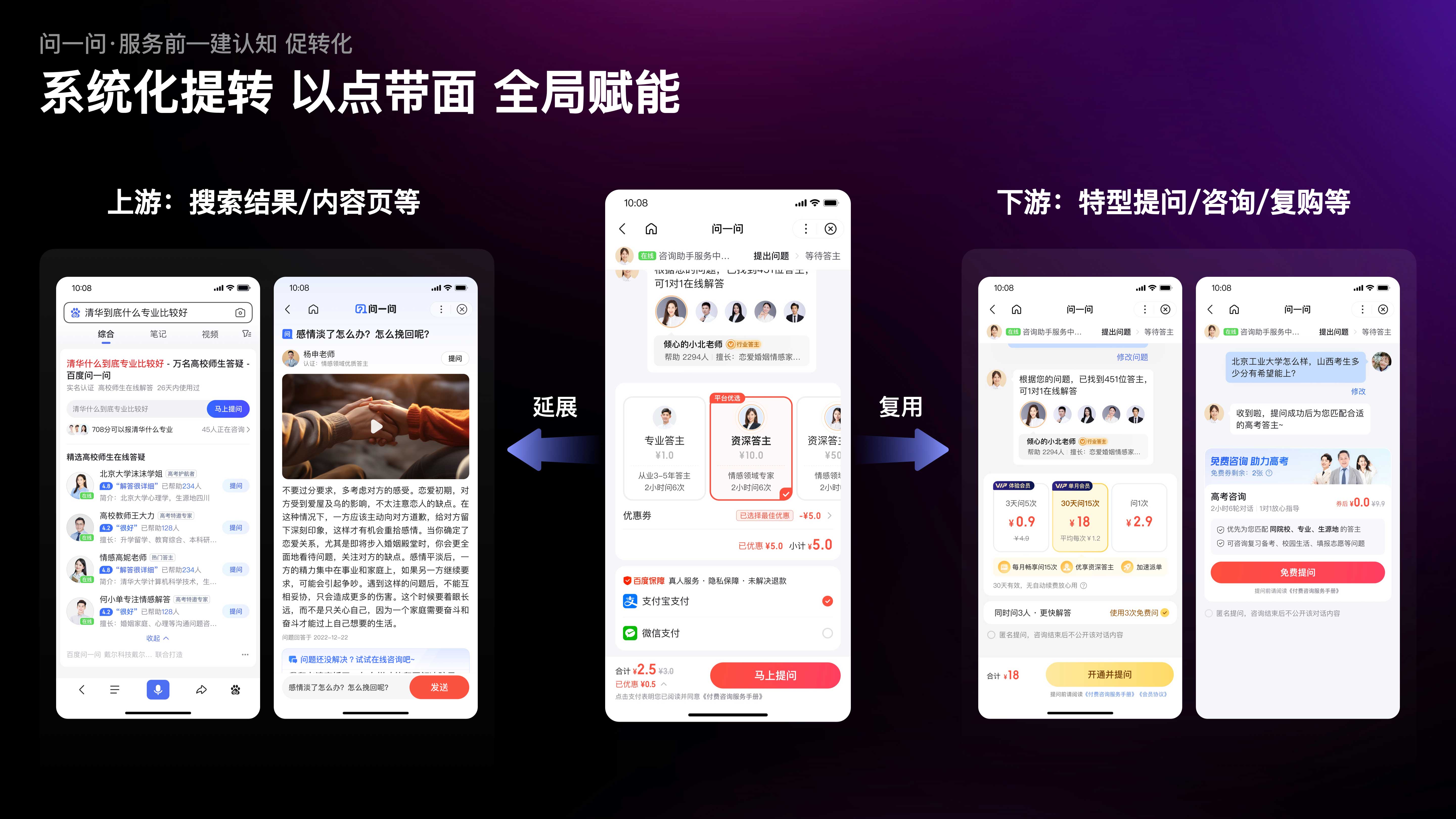 “百度問一問”是一款由真人答主提供1對1實時在線咨詢的服務(wù)型產(chǎn)品,自2020年孵化成功已走過3年半的歷程。作為服務(wù)場域的建設(shè)者,我們的設(shè)計使命從初創(chuàng)驗證階段的基建搭建,到規(guī)模擴張期的提轉(zhuǎn)探索,升級為現(xiàn)階段的追求體驗&收入雙線發(fā)展。