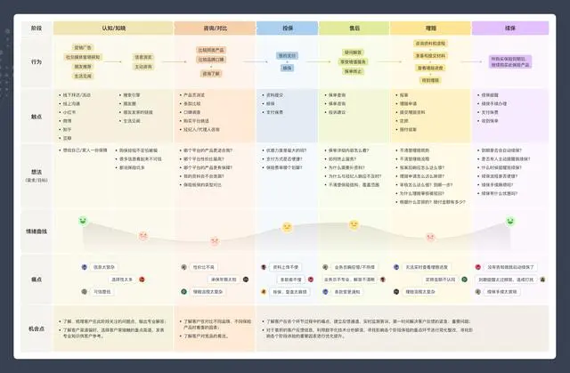 用戶旅程圖的應(yīng)用廣泛,不僅可以幫助我們進行流程分析,還可以識別痛點,定義問題域。同時,它也可以幫助我們進行用戶反饋的收集和整理,為產(chǎn)品或服務(wù)的優(yōu)化提供依據(jù)。