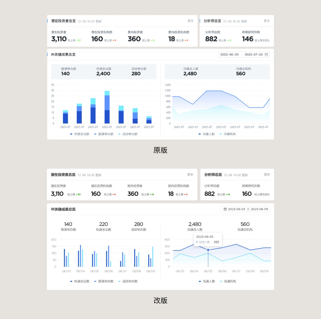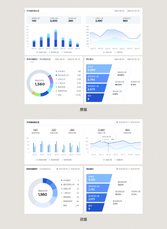但重要不代表需要過度傾注和堆疊視覺元素,過度的設(shè)計會讓界面看起來有 “飛機(jī)” 敢,不僅不真實的印象產(chǎn)生了,還會顯得業(yè)余不夠自信。同時任何項目中表盤頁過度設(shè)計都會對整個項目造成負(fù)擔(dān),后續(xù)的頁面要怎么設(shè)計才能不和它產(chǎn)生隔閡,保持一致性。