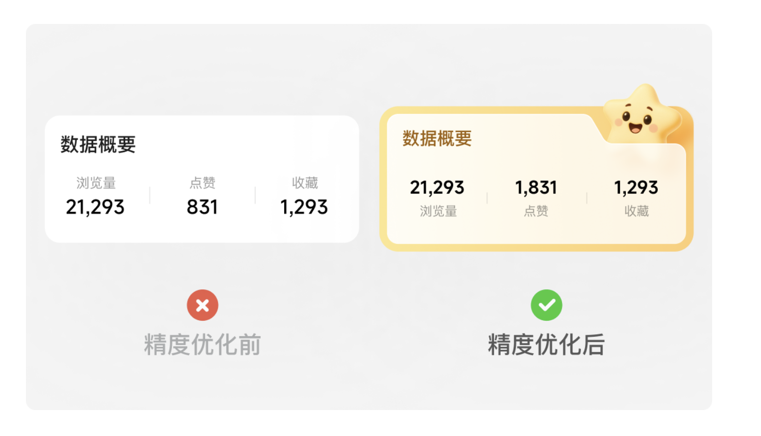 數據卡片的核心是傳遞數字信息,優化需兼顧 “可讀性” 與 “視覺吸引力”,避免陷入 “純文字堆砌” 的誤區。