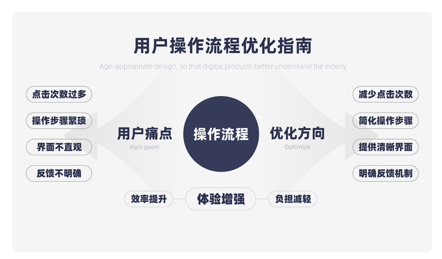 適老化設計的核心,在于讓數字產品主動 “適配” 老人的使用習慣,而非讓老人勉強 “適應” 產品。其中,簡化操作流程是破局的關鍵。如何將這一理念落地為切實可行的設計方案?以下 5 個經過實踐驗證的適老化細節,或許能給出答案。