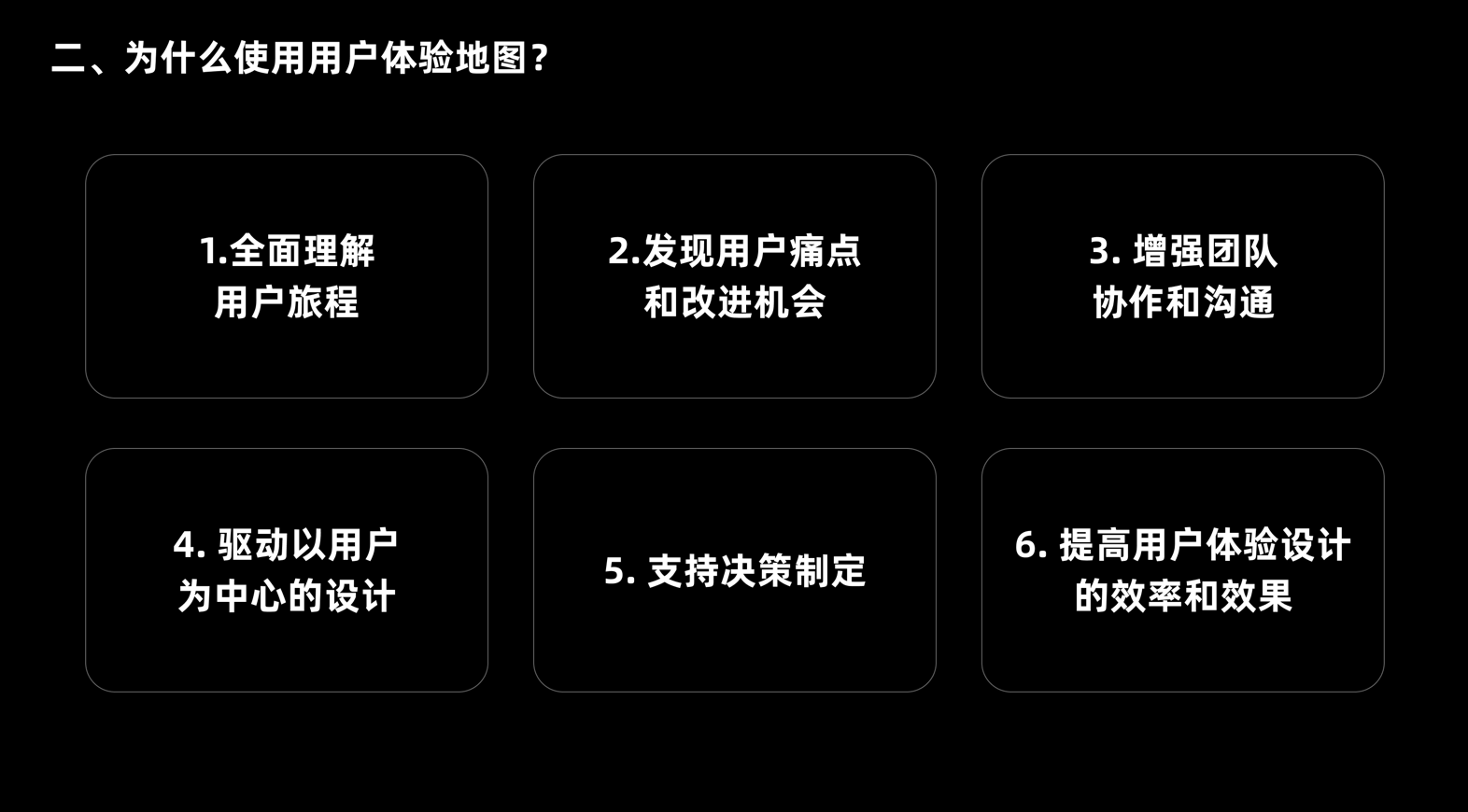 - 驅動以用戶為中心的設計:始終聚焦用戶的需求、情感與行為,倒逼團隊跳出 “功能自嗨”,讓產品設計、開發全流程圍繞用戶展開,最終提升用戶滿意度與忠誠度。