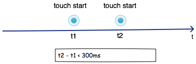 注意雙擊事件中我們檢測了相鄰兩個 touchstart 事件的位移和時間間隔。
