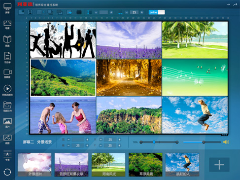 由于大屏的硬件、使用場景和用戶群體,專業(yè)的大屏生產(chǎn)商是提供軟件的,大屏上除了可以直接接入計算機(jī)RGB信號、視頻信號外,還可以接入網(wǎng)絡(luò)信號。通過對信號系統(tǒng)和GIS系統(tǒng)的各種計算機(jī)圖、文及網(wǎng)絡(luò)信息、視頻圖像信息的動態(tài)綜合顯示,實現(xiàn)對地理狀況、發(fā)生地震時的狀況等信息的實時監(jiān)視。大屏是可以配置不同區(qū)域放什么內(nèi)容,內(nèi)容區(qū)塊之間是可以互相調(diào)換位置和大小的。