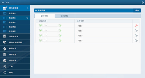 針對應(yīng)用場景和特殊場景,可以進(jìn)行不同的預(yù)案,設(shè)定不同主題的屏幕內(nèi)容和屏幕切換顯示的時間。