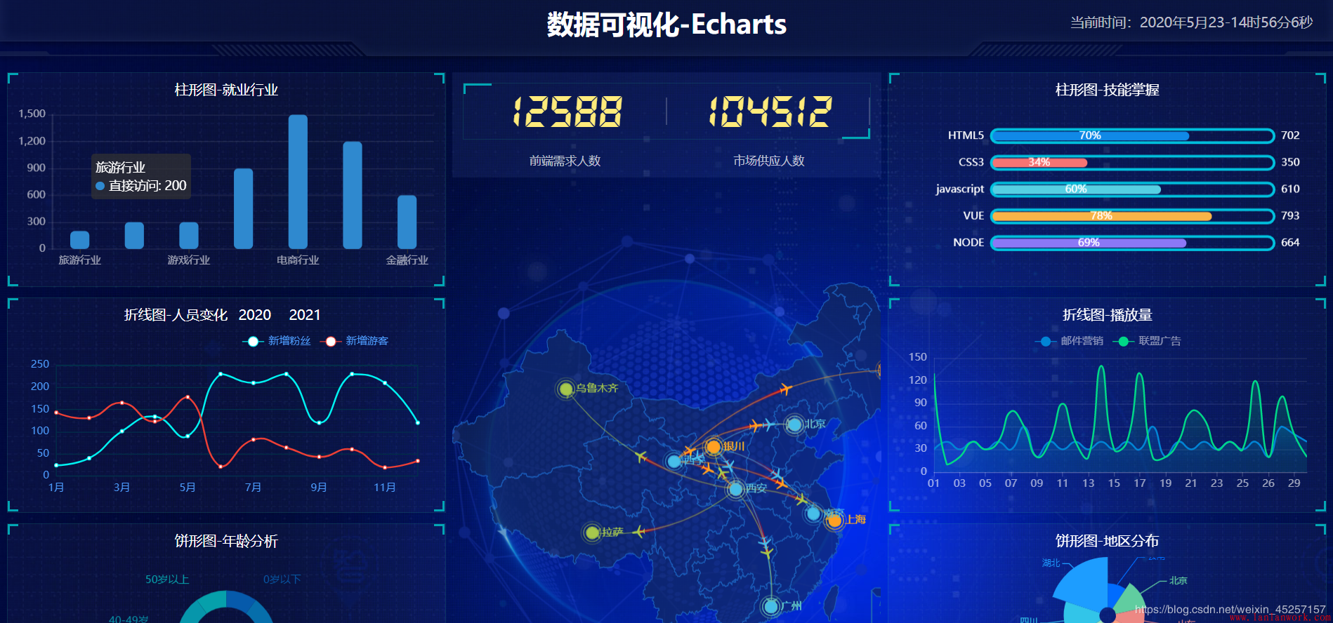 應對現在數據可視化的趨勢,越來越多企業需要在很多場景(營銷數據,生產數據,用戶數據)下使用,可視化圖表來展示體現數據,讓數據更加直觀,數據特點更加突出。