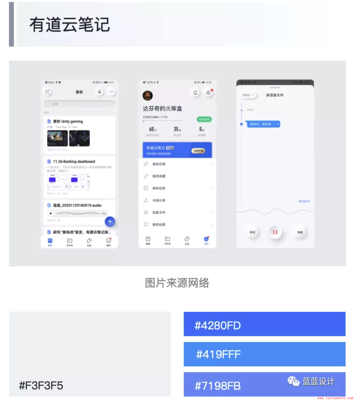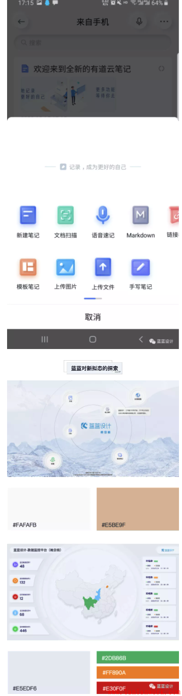 這是一款多平臺記錄工具,有道云筆記的擬物化設計風格相對謹慎,主要的操作按鈕部分,均采用了“擬物化的”風格,但是在大面積的展示區域和非功能性按鈕依然沿用了簡潔的扁平化設計。在保證“新擬物”質感的同時,保證主體內容的可閱讀性,和整體頁面的清爽感。