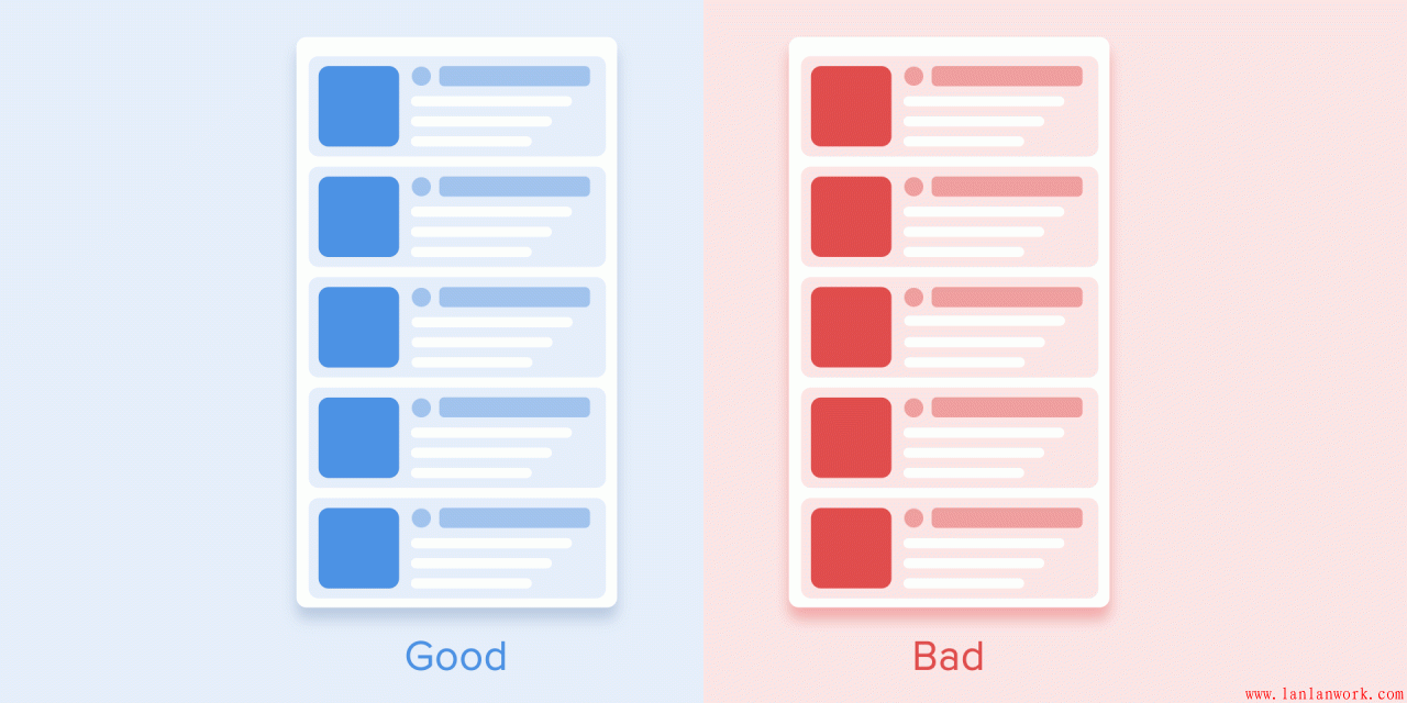 在這種情況下,所有卡片都按一個相同的流程出現,引導用戶注意力在一個方向上,即從上到下。如果我們不按照這個順序,用戶的注意力就會分散,如果所有元素同時出現也會很糟糕。