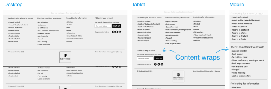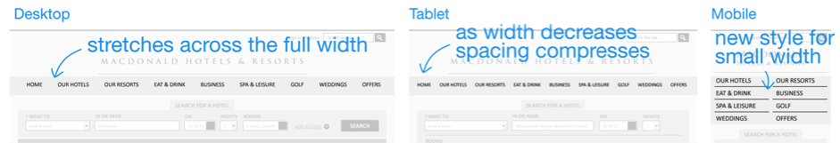 我們將使用一個(gè)真實(shí)的酒店網(wǎng)站 作為范例,來演示響應(yīng)式Web設(shè)計(jì)的流程。這個(gè)網(wǎng)站是我們在九月份剛剛為Macdonald連鎖酒店創(chuàng)建的。在整個(gè)設(shè)計(jì)開發(fā)流程中,有幾個(gè)關(guān)鍵步驟,是我們接下來要逐一展開學(xué)習(xí)的: