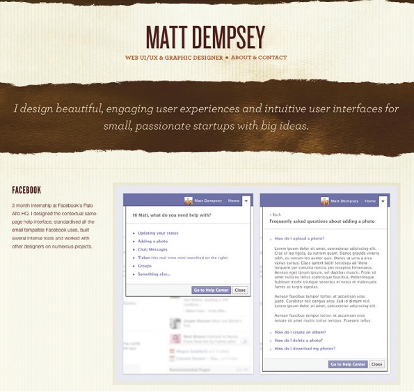 雖說是簡介,也要在有限的篇幅中盡量做到具有針對性。例如Ethical Studio 簡單而有效的將他們自己描述為“為非ZF組織、慈善團體創建網站”的工作室;又譬如設計師Matt Dempsey 是這樣介紹自己的:“我為充滿激情與想法的小創業團隊打造體驗精良、符合用戶直覺的漂亮界面。” 通過這樣的文案,你不僅可以立刻了解到他是做什么的,而且對他所承接業務的方向也有了清晰的認知。