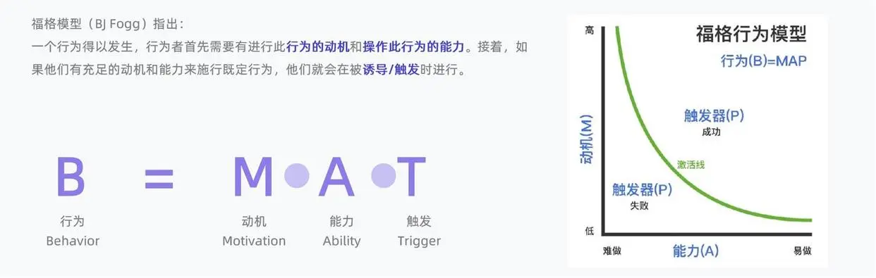 在明確教育本質后,再來看學習行為。從經典的動機理論模型(福格模型)來看,學習行為的構成需要 3 個要素,動機(Motivation)、能力(Ability)和觸發(Trigger),三者缺一不可。