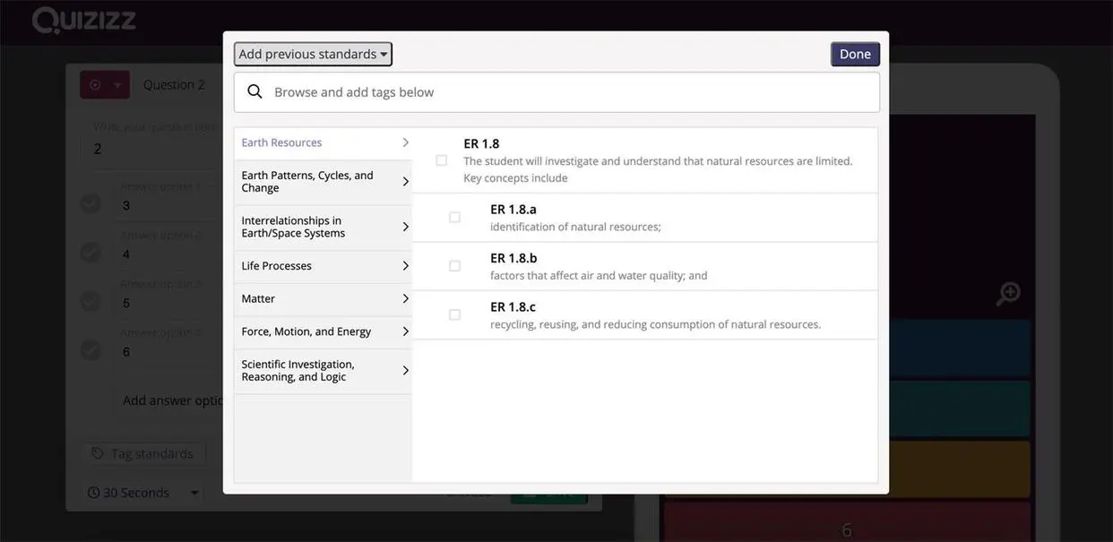 在海外的教育軟件 Quizizz 中,老師可以關聯知識點,并設置難易程度,幫助用戶根據自己的學習水平選擇合適的題目: