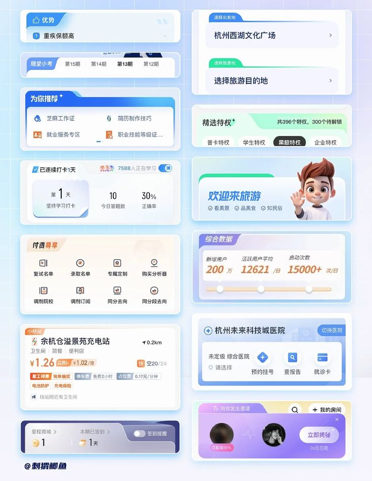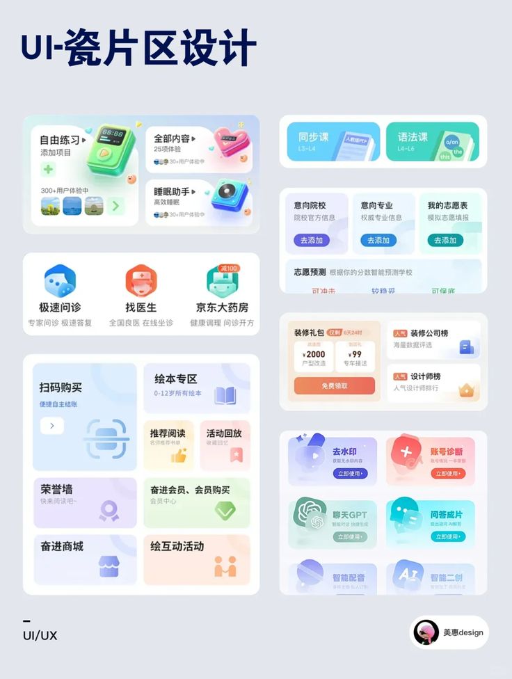• 場景適配:在學習類 APP 中,瓷片區可以將 “自由練習”“睡眠助手” 等功能模塊獨立呈現;在醫療類界面中,“極速問診”“找醫生” 等入口也通過瓷片實現快速分流。