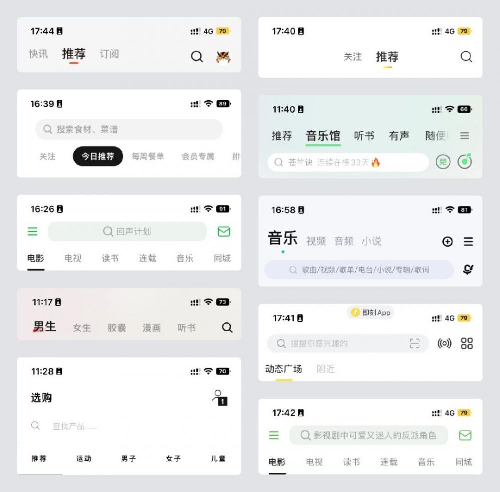 • 場景適配:內容類 APP 的 “推薦 / 關注 / 訂閱” 標簽欄,讓用戶在不同內容流間快速切換;工具類產品的功能導航欄,則通過圖標 + 文字的組合,讓復雜功能變得觸手可及。