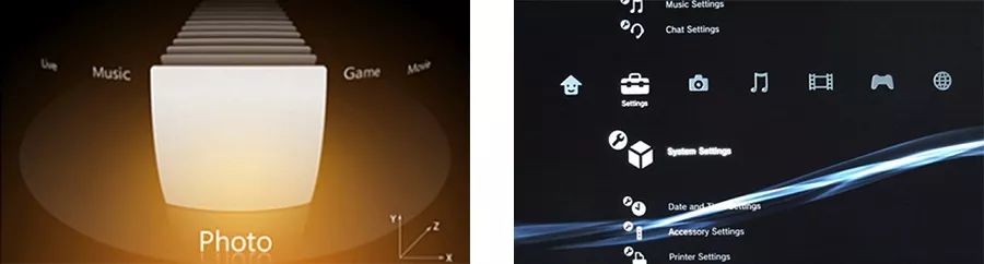 電視產品上最常用的菜單和導航模式一般都可以總結為以上4種,當然還有一些其他的方式。隨著用戶多設備的使用,越來越多的手機端和PC端的設計模式開始在電視上出現;而更多的產品界面因其復雜的功能無法只使用1種菜單和導航模式,往往是混合型設計,如圖8所示。不過,無論使用何種導航和菜單類型,電視大屏幕的菜單和導航的設計目標終歸是:用戶可以快速定位,并且能夠預測出操作結果。因此,靈活使用導航和菜單,使用戶不會迷失在功能繁多的界面信息中就尤為重要。